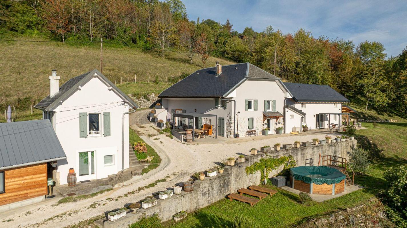 Rare à la vente ! Situation dominante offrant une vue imprenable pour cette magnifique propriété disposant à la fois du charme issu de sa maison vigneronne d'origine et de la modernité de sa rénovation ainsi que de ses extensions. Sur les hauteurs d'Apremont à quelques minutes des axes routiers sans en avoir la nuisance, vous disposerez d'un terrain de caractère offrant un magnifique point de vue sur les montagnes environnantes : vue à 180 degrés des Bauges aux Belledonnes. Implanté sur un terrain d'environ 6450m2, le bien est composé de trois bâtiments ayant chacun leur spécificité : La maison de Maître, maison vigneronne du 19ème siècle a été rénovée et étendue récemment. Cette maison principale est ainsi composée : •à la fois du corps vigneron d'origine disposant d'un double séjour, d'une cuisine équipée, d'un bureau, d'une salle d'eau, d'une chaufferie et de deux chambres. •Et d'une extension harmonieusement intégrée au bâtiment principal et composée en rez-de-chaussée d'une magnifique pièce de vie avec cuisine équipée, d'une salle de bains avec douche et baignoire, et à l'étage de ses deux chambres accessibles par une coursive ferronnée. A cette extension s'ajoute un bar extérieur couvert avec possibilité de cuisine d'été, jacuzzi... Il est aisément possible de réunir ces deux parties, pour obtenir un bien aux volumes exceptionnels, d'une surface d'environ 200m2, combles aménageables de 85m2 en sus avec accès indépendant. L'ensemble est chauffé par un système de pompe à chaleur AIR/EAU. Ensuite, vous trouverez une petite maison fonctionnelle d'environ 30 m2 utiles, et sa cave. Cette coquette maison propose tout le confort qui vous permettra d'accueillir vos invités ou de générer des revenus en location courte ou longue durée. Une Climatisation réversible gère le chauffage et le rafraichissement tout au long de l'année. Enfin, au Sud, un bâtiment à usage multiple d'environ 90m2 propose un fort potentiel : détente, loisir, activités artistiques et / ou manuelles, grand garage, stockage de véhicules de collection... Les propriétaires actuels ont apporté un choix particulier aux matériaux et aux équipements : sols en carrelage « effet pierre » en pose opus romain, ferronnerie des escaliers, carrelages de grand format, faïençage haut de gamme , plan travail en granit, alarme avec prévention d'intrusion… Le stationnement se fait à l'entrée de la propriété sur un parking gravillonné. Chaque habitation dispose de terrasses aménagées majoritairement de pergolas, permettant de profiter de la vue imprenable. Une Piscine hors sol complète les équipements dédiés à la détente. En complément, ensemble de parcelles de bois sur la commune. Véritable havre de paix au caractère à la fois authentique et moderne et aux prestations raresContact: 06.35.35.06.37 / immobilier.73007@73007.notaires.fr Les informations sur les risques auxquels ce bien est exposé sont disponibles sur le site Géorisques : www. georisques. gouv. fr