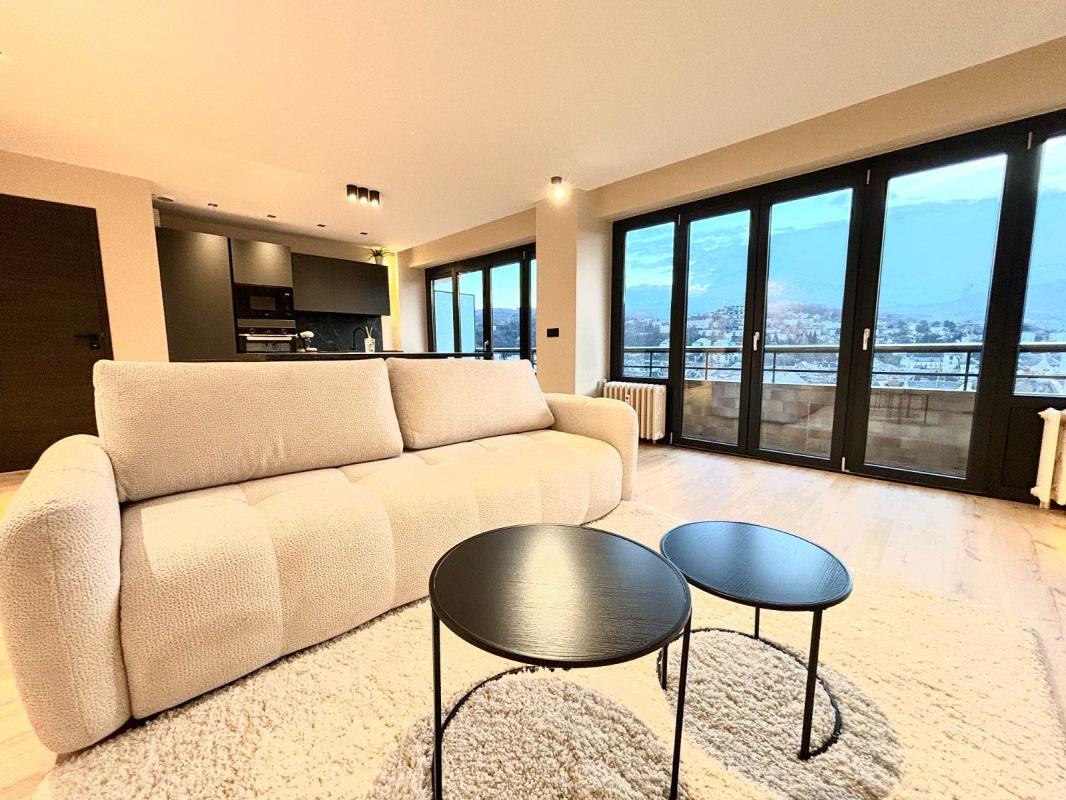 Au coeur de la cité des ducs de Savoie, proche de toutes les commodités, découvrez un magnifique appartement de type 3, entièrement rénové avec gout et une bonne qualité des matériaux utilisés. Ce bien, rare à la vente, en étage élevé, offre une vue exceptionnelle sur l'ensemble du centre ville de Chambéry et les montagnes environnantes. L'appartement, disposant d'une climatisation, est composé d'un couloir d'entrée moderne et accueillant, d'une cuisine, équipée des dernières technologies, ouverte sur un lumineux séjour à la décoration élégante et contemporaine donnant accès à un grand balcon, de deux chambres qui disposent également d'un accès à un second balcon, d'une salle de douche au design parfait, d'un wc ainsi qu'un cellier. Une cave complète ce bien. Possibilité d'acquérir une place de parking au sein de la copropriété en supplément. Une opportunité rare à Chambéry à ne pas manquer. Contact: 06.35.35.06.37 / immobilier.73007@73007.notaires.fr Les informations sur les risques auxquels ce bien est exposé sont disponibles sur le site Géorisques : www. georisques. gouv. fr